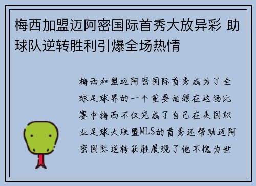 本文将围绕梅西领衔巴萨在新赛季首场比赛中取得胜利的表现展开详细阐述,分析巴萨如何在经历了艰难时刻后强势反弹,并在本赛季向冠军发起冲击。通过四个方面的剖析,本文将深入探讨梅西的个人影响力、巴萨的整体战术革新、球队的心理状态以及他们的长期战略目标。梅西的领军作用不仅是巴萨近期胜利的关键,也为球队未来的成...